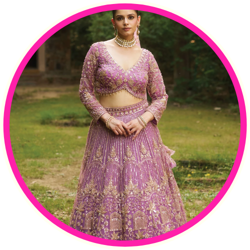 Yellow & Dusty Green Silk Zardosi & Embroidered lehenga