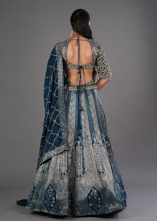 Rust Georgette Zari Sequence & Stone Work Lehenga Set