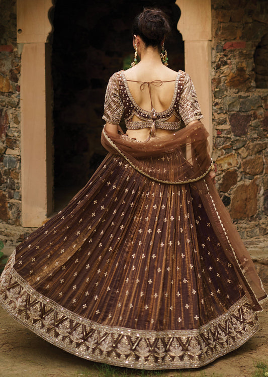 Brown Tissue Chiffon Lehenga Set