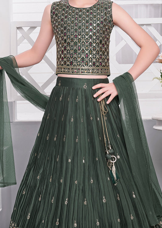 Dusty Green Georgette Kids lehenga