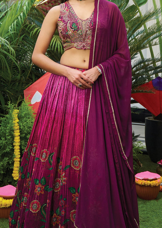 Dark Magenta Crepe Lehengas