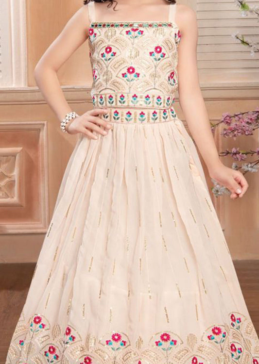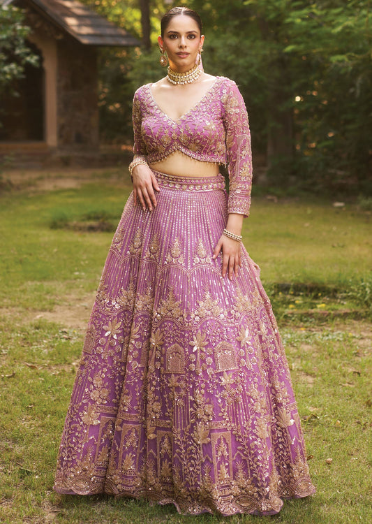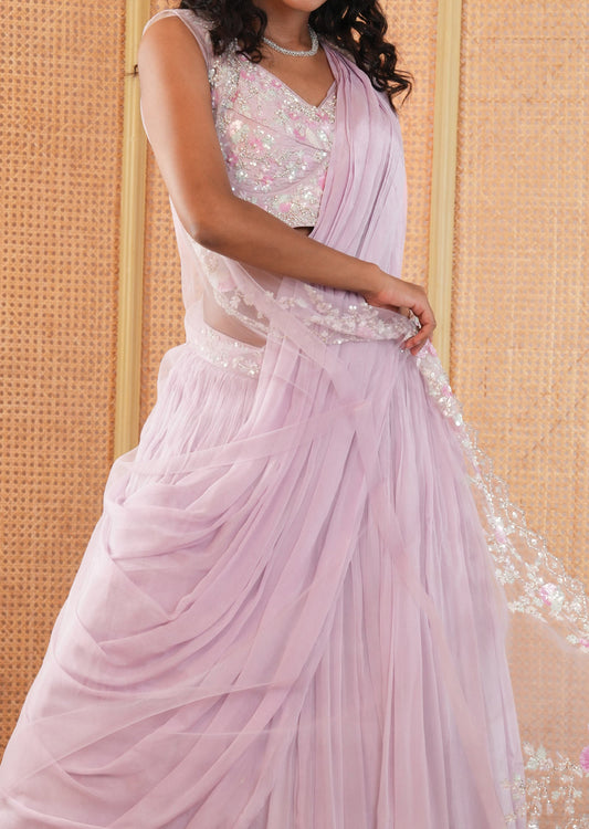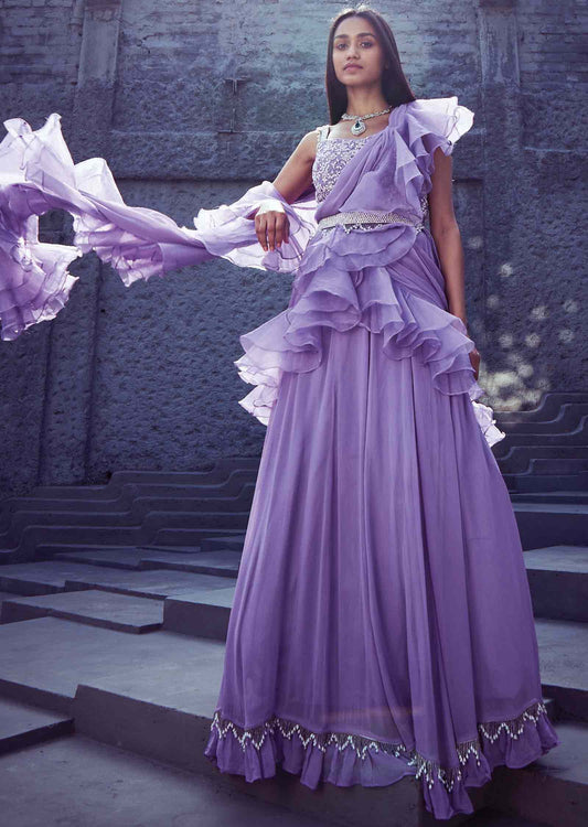 Light Lavender Silk/Chinnon Embroidered Fusion/Indo-Western Lehenga
