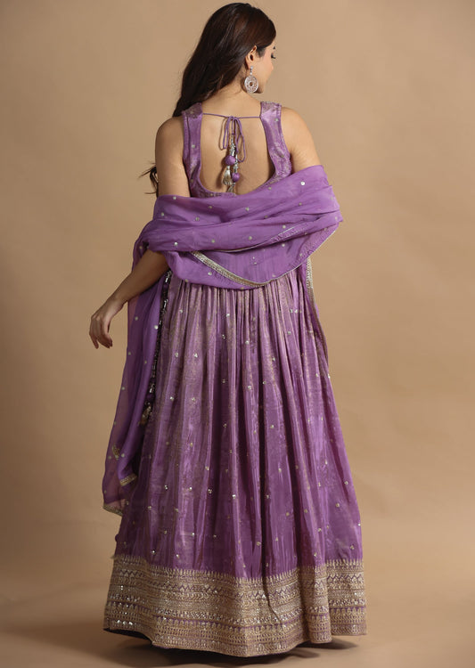 Lavender Banaras Tissue Kurti with Zardosi & Mirror Work