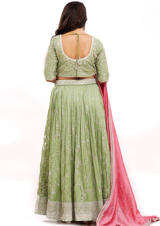 Light Mehndi Green Silk Lehenga Set with Zari & Sequence Work