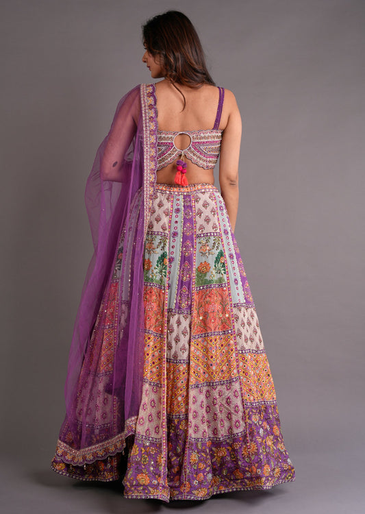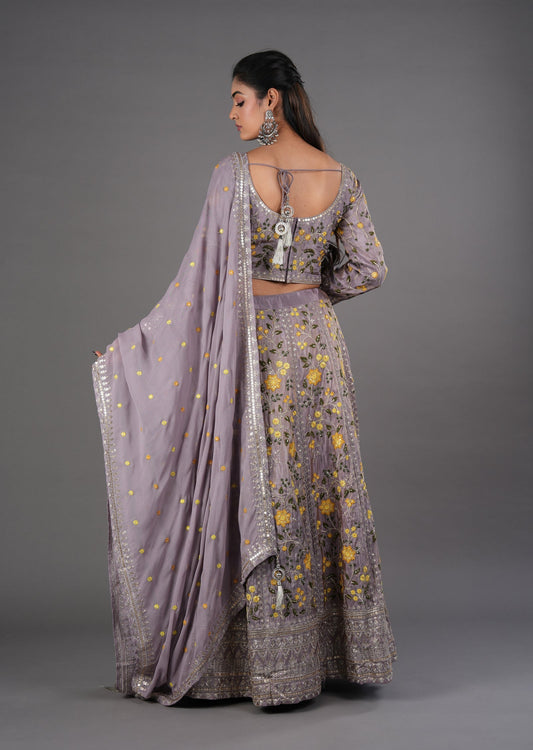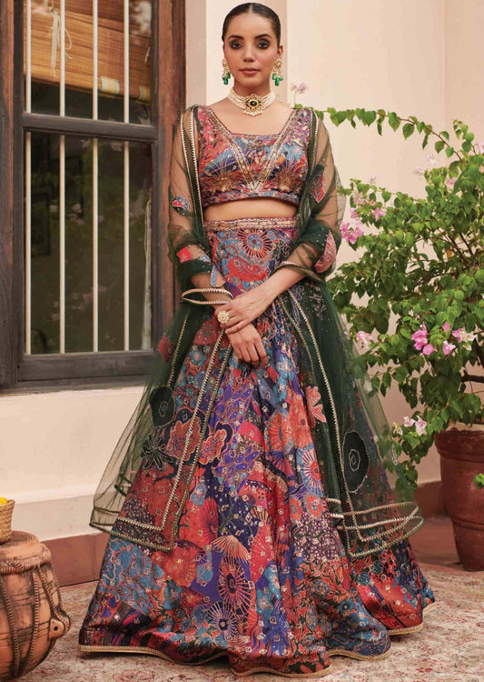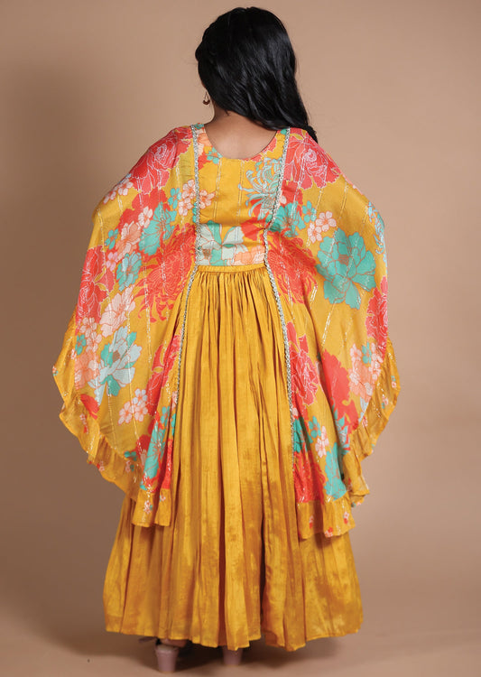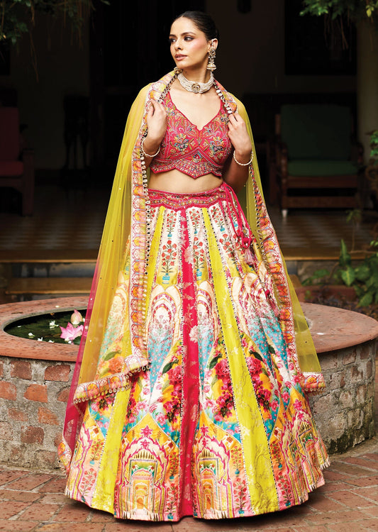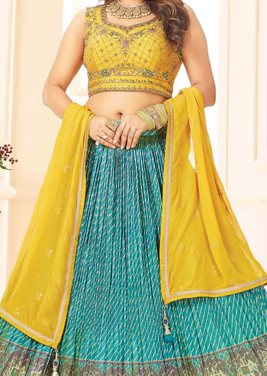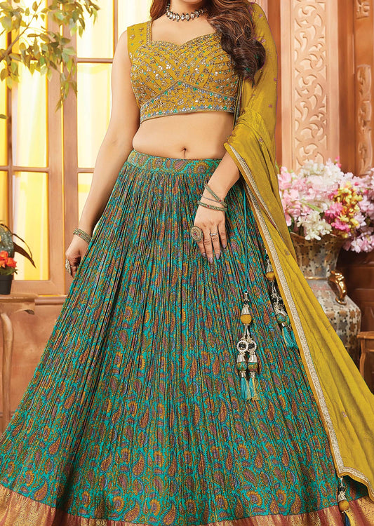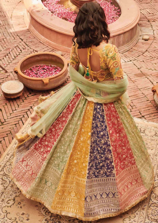 Mustard & Contrast Sea Green Silk Zardosi & Embroidered lehenga
