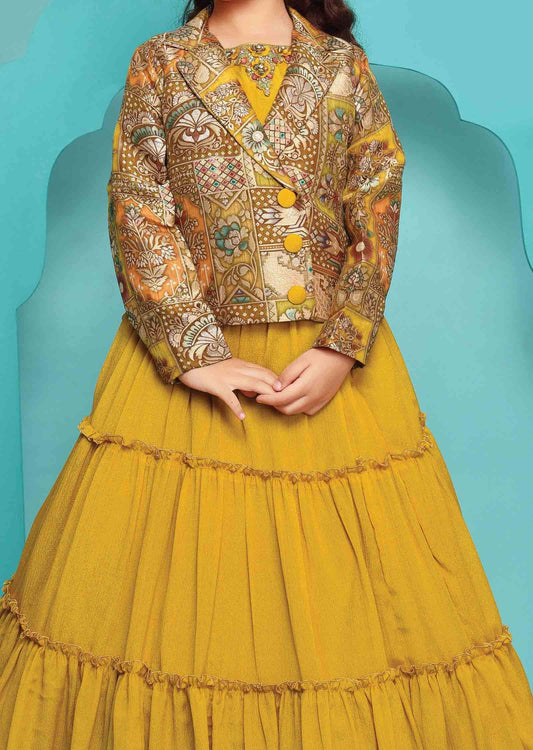 MUSTARD EMBROIDERED GEORGETTE SUIT SET 101