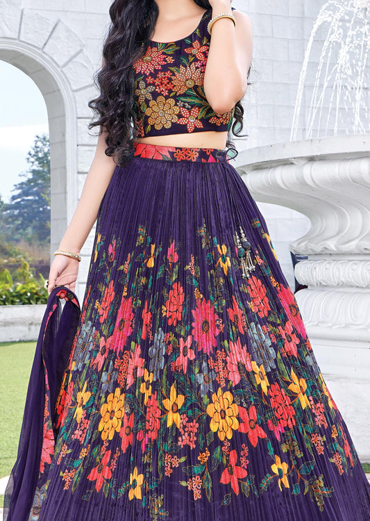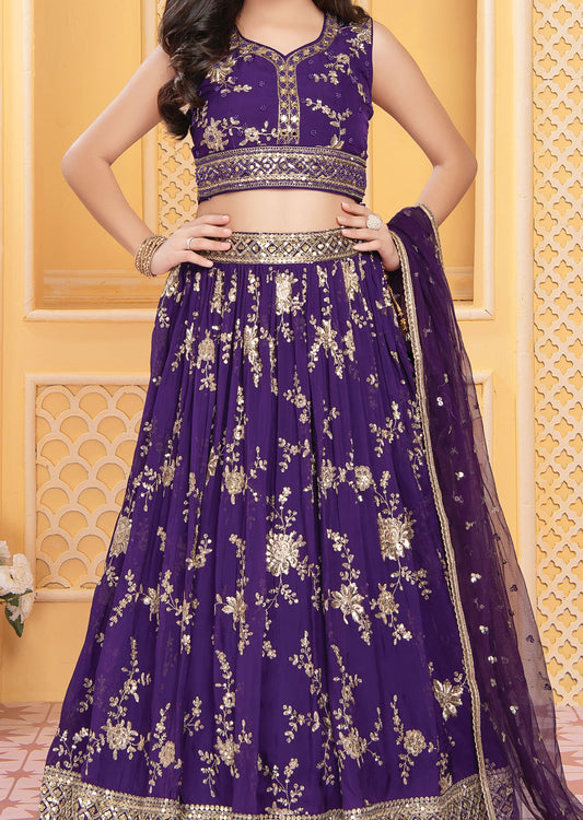 PURPLE LAKHNAWI EMBROIDERED GEORGETTE ANARKALI SUIT SET