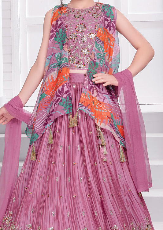 Pink Chiffon Silk Lehenga for Kids with Organza Jacket